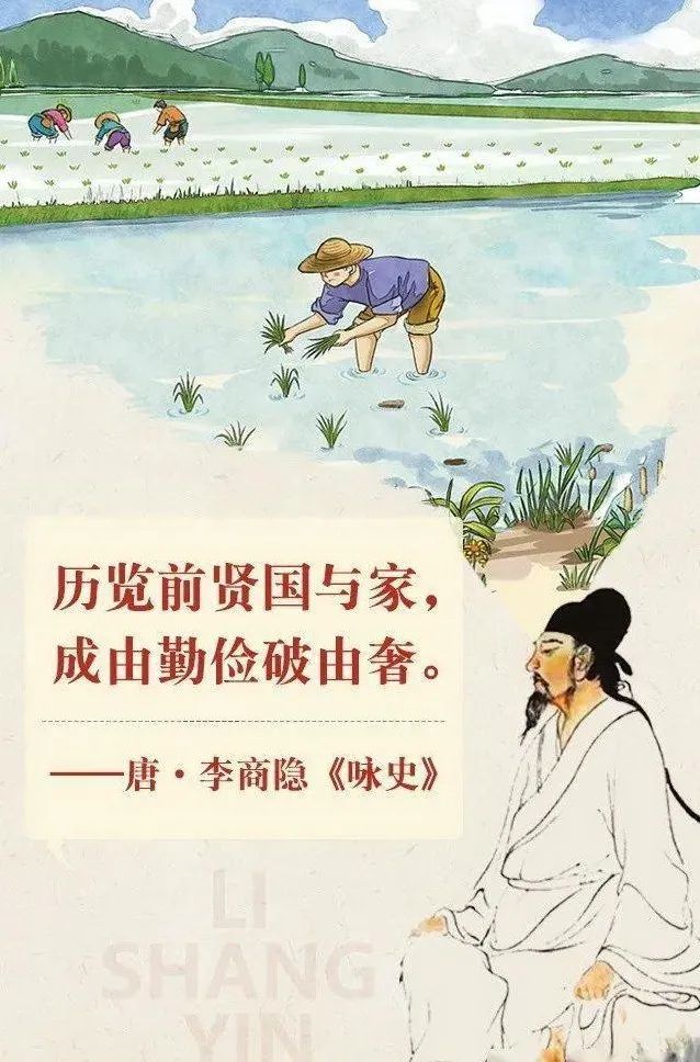 在中国漫长的农耕文明史中,惜食节俭成为流淌在中国人血脉中的传统与习惯,古人们留下了许多关于倡俭戒奢的诗词名句,提倡节俭。如今,虽然不再缺衣少食,但土地能承载和产出的资源始终有限,“厉行节约、反对浪费”的传统不能忘、不能丢。让我们重温这些诗词名句,感受和传承中华节俭美德。